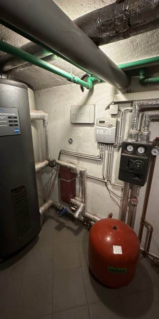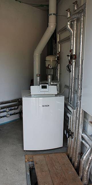 Da sich der Gasbrennwertkessel und der Kombikessel an unterschiedlichen Standorten befinden (Keller und Nebenhaus im Erdgeschoss), stellte der hydraulische Umbau eine besondere Herausforderung dar. Durch die zentrale Regelungstechnik arbeitet die gesamte Anlage effizient und optimal abgestimmt.
